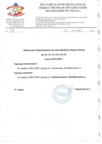 Обращаем Ваше внимание, что запланированный турнир Первенства Ростовской области по мини-футболу среди детско-юношеских команд 2003-2004 г.р., который должен был состоятся 25 января в п.Ильичевска переносится в п.Каменоломни.