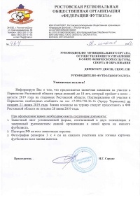 Информируем Вас о том, что продолжается заявочная кампания на участие в Первенстве Ростовской области среди юношей до 18 лет, которое пройдет в июле - августе 2019 года на стадионах Ростовской области. Подтверждение об участии в Первенстве необходимо подтвердить по тел. 8-928-758-36-16 (Артур Тиракьянц) не позднее 21 июня 2019 года. Заявку в ФФ Ростовской области необходимо предоставить до 28 июня 2019 года.