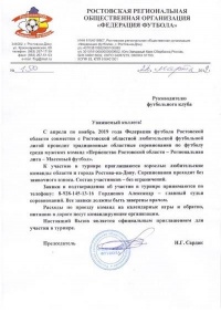 С апреля по ноябрь 2019 года Федерация футбола Ростовской области совместно с Ростовской любительской лигой проводит традиционные областные соревнования по футболу среди мужских команд «Первенство РО - Региональная лига - Массовый футбол».