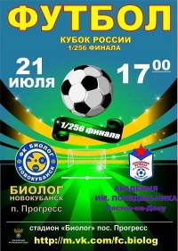 В субботу, 21 июля, в п.Прогресс состоялся матч 1/256 финала Кубка России по футболу. Местный футбольный клуб «Биолог-Новокубанск» принимал ростовскую «Академия футбола им В.Понедельника».