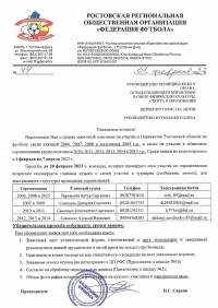 Уважаемые коллеги! Напоминаем Вам о сроках заявочной кампании на участие в Первенстве Ростовской области по футболу среди юношей 2006, 2007, 2008 и мальчиков 2009 г.р., а также на участие в областных соревнованиях среди мальчиков 2010, 2011, 2012, 2013, 2014 и 2015 г.р.. Сроки заявки по всем возрастам с 1 февраля по 7 апреля 2023 г. Просьба, до 20 февраля 2023 г. команды, которые планируют свое участие по определенным возрастам подтвердить главным судьям о своем участии в турнирах (сообщение, звонок), для выстраивании структуры проведения соревнований.