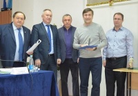 В завершении заседания исполкома председатели Ростовской региональной общественной организации «Федерация футбола» Николай Сардак общественной организации «Ветераны донского футбола» Валерий Синау вручили призы представителям муниципальных образований - лидерам рейтинга футбольной активности по итогам 2017 года.